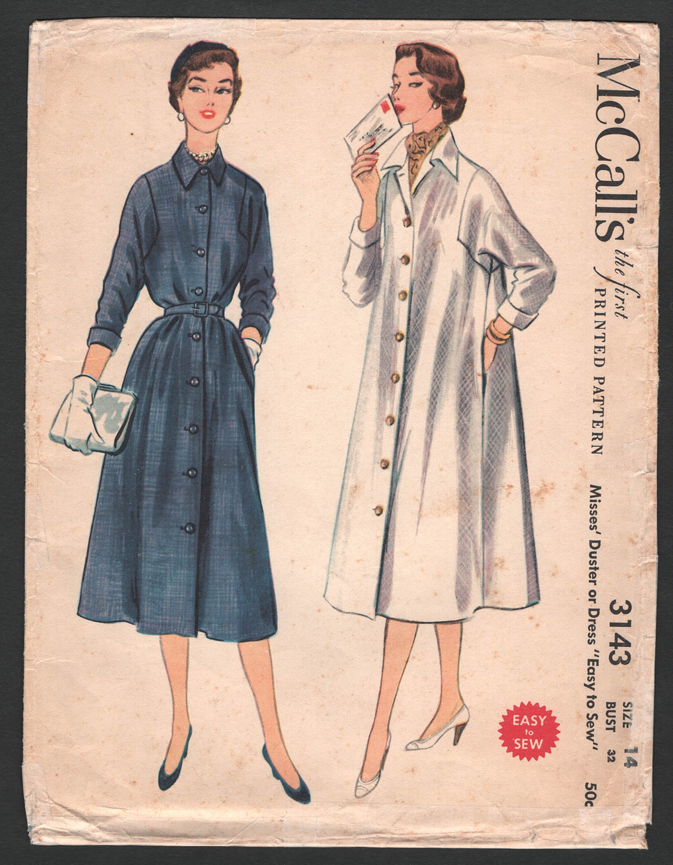 1950s Sewing Pattern Duster Coat Or Button Down Dress Easy Etsy